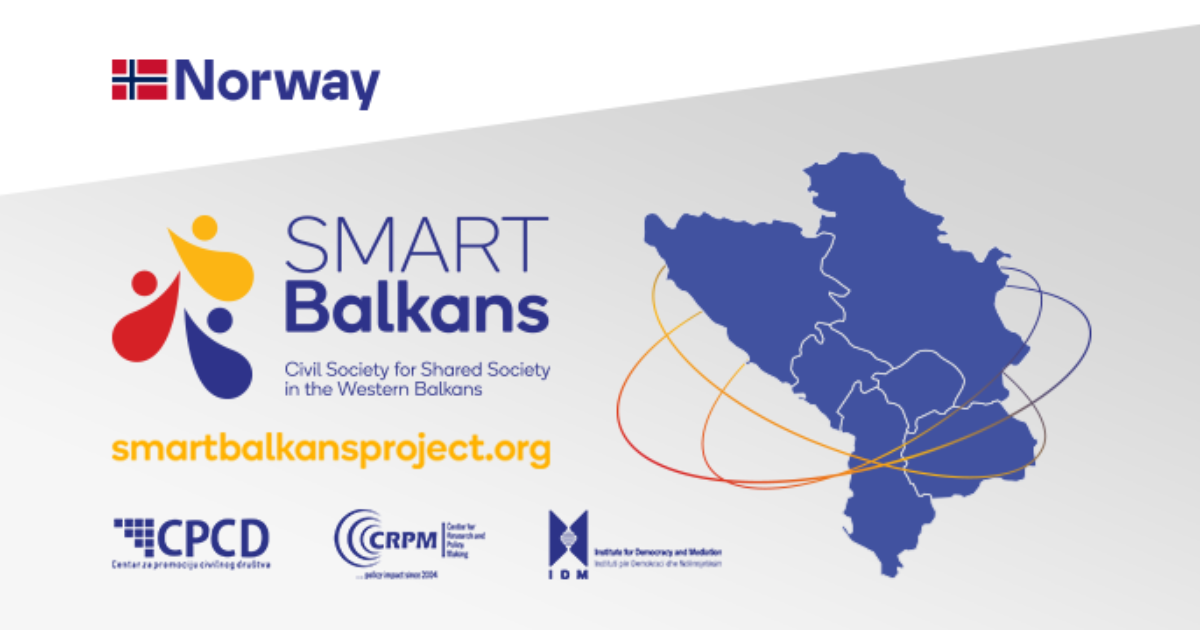 Center for Civil Society Promotion (CPCD), together with partner organizations from Albania – Institute for Democracy and Mediation (IDM) and North Macedonia – Center for Research and Policy Making (CRPM), is implementing a project named SMART Balkans – Civil society for shared society in the Western Balkans, which contributes to strengthening participatory democracies and Euro Atlantic integrations in the Western Balkans by empowering civil society organizations and CSO networks for stronger and active role in creating peaceful and inclusive societies for sustainable development in Albania, Bosnia and Herzegovina, Kosovo, Montenegro, North Macedonia, and Serbia.