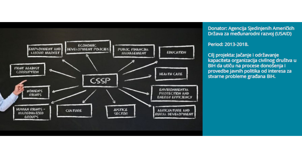 The Centers for Civic Initiatives (CCI) and the Center for Civil Society Promotion (CCSP) implemented a five-year Civil Society Sustainability Project (CSSP), to strengthen and maintain the capacity of civil society organizations in BiH.