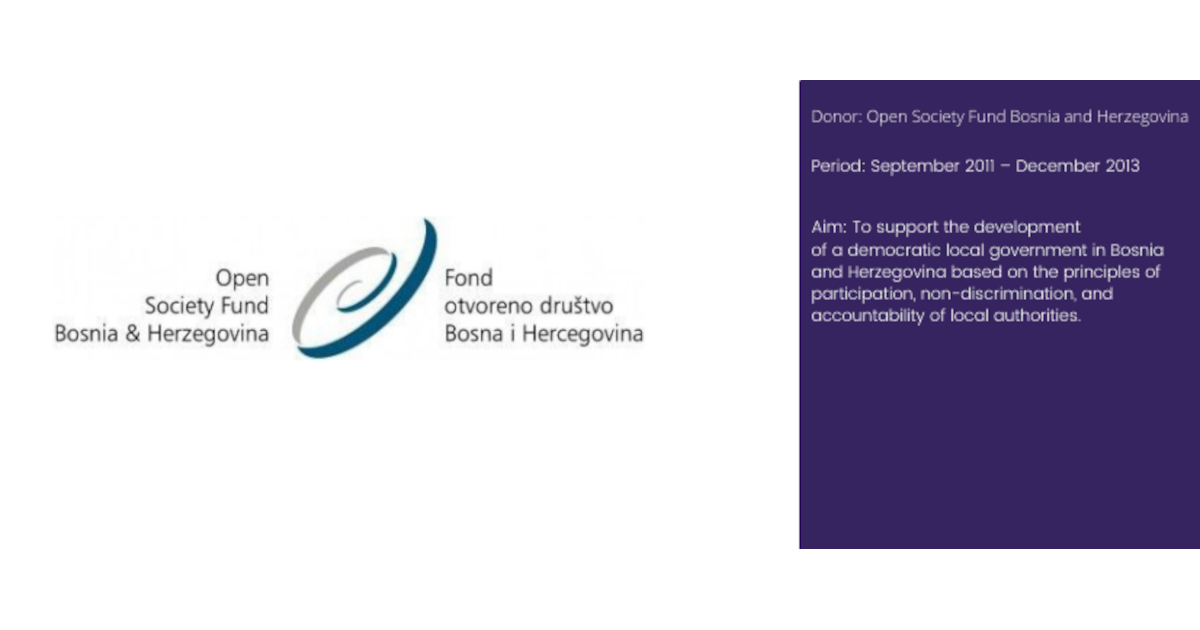 The main purpose and goal of the project can therefore be defined as improving the responsibility and efficiency of local authorities in BiH in providing public services and meeting the real needs of citizens through a more active role of civil society.