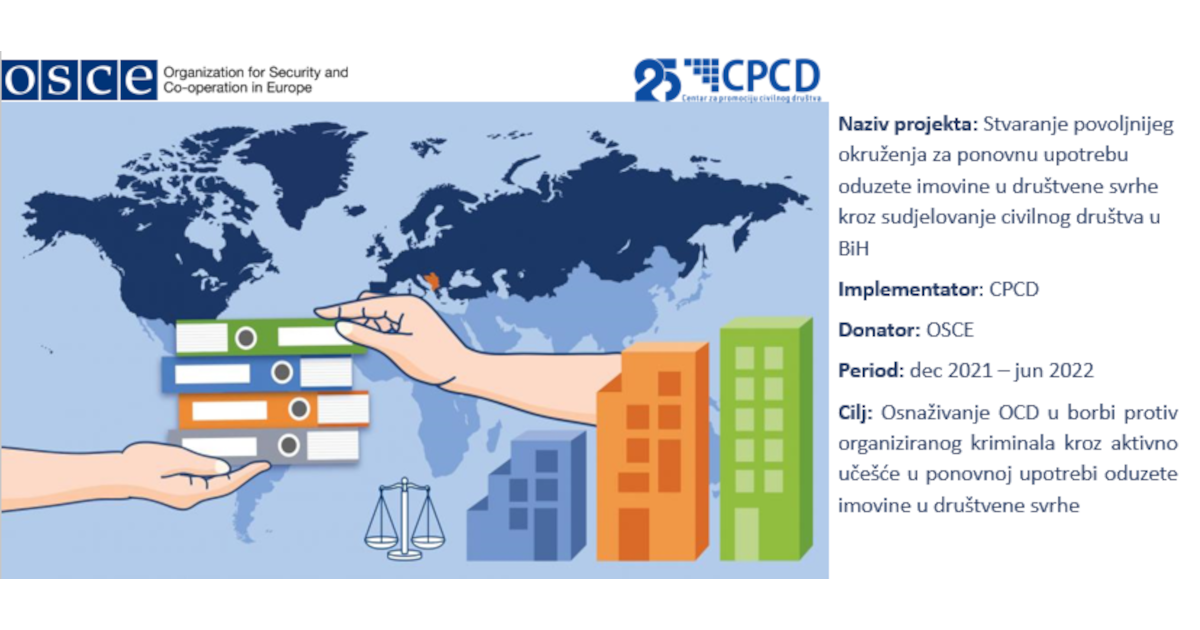 The project is implemented by Centar za promociju civilnog društva – CPCD within the framework of OSCE’s regional project “Strengthening the fight against transnational organized crime in South-Eastern Europe through improved regional co-operation in asset seizure, confiscation, management and re-use”.